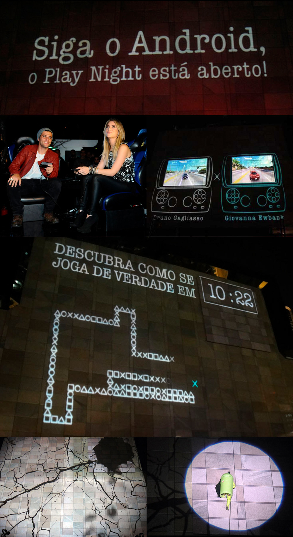 Para isso, criamos a Play Night – um evento de grande visibilidade no Shopping Morumbi. A noite começou com um campeonato com as telas dos Xperia Play projetadas na fachada do shopping. Celebridades como Bruno Gagliasso e Giovanna Ewbank deram o start e vários jornalistas especializados do ramo participaram da competição.